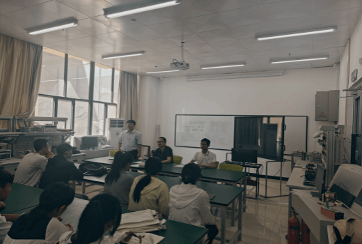 课堂上,三位老师相互配合,由霍大勇院长先对本次课程的章节验收与评价进行理论讲解,对华电班学生操作案例进行剖析归纳,得出进行电气工程作业过程中的注意事项和重点,黄二强主任和侯本良工程师通过讲解一些在生产过程中由于缺乏质量意识而导致不良后果的案例,使学生加深了对质量管理的认识和理解,强化了质量意识。整堂课,同学们听得聚精会神,并不时与导师互动,课堂气氛十分活跃。