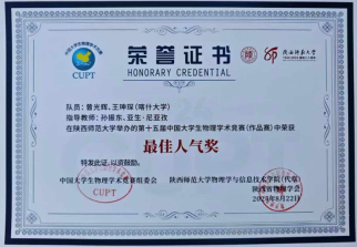 通过长达十个月的年度CUPT学科竞赛备赛和比赛,我校参赛学子在分析和解决物理问题能力,科研素养和表达能力,思考与辩论能力、心理素质抗压能力、研究创新能力、学术海报的制作与讲解答辩等能力方面都得到了很大的提升。他们不仅在作品赛呈现了精彩的讲解与答辩,而且很阳光地与兄弟高校学子积极交流互通,获得了国赛二等奖以及最佳人气奖,受到参赛队伍师生的广泛关注,为我校再次赢得了荣誉。