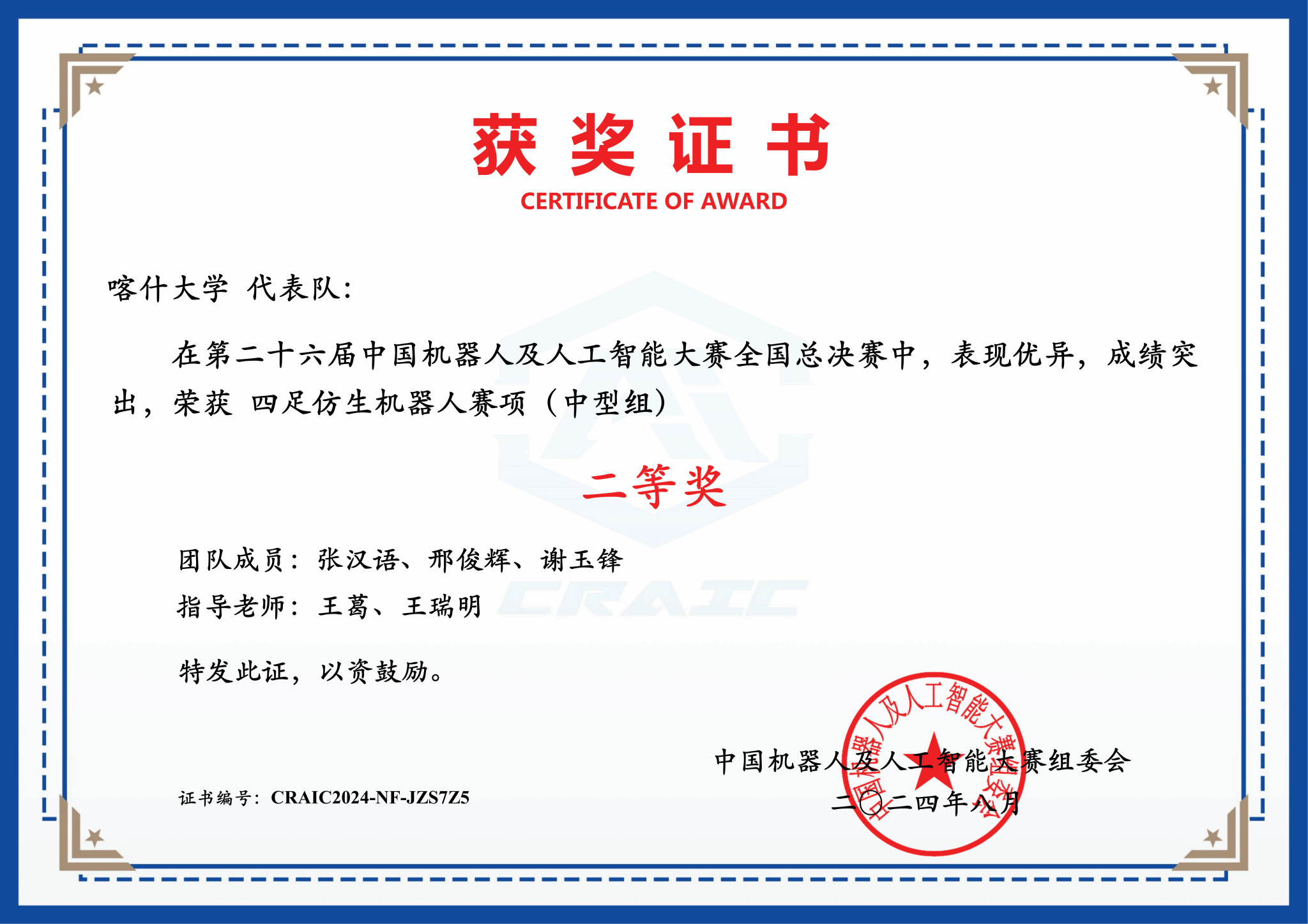 8月25日,备受瞩目的第二十六届中国机器人及人工智能大赛全国决赛圆满结束,经过激烈角逐,我校物理与电气工程学院在全国初评赛,斩获自治区一等奖2项、二等奖1项,并被推荐参加国决赛。在决赛中由寇元宝、马振兴老师指导的机器人竞技赛(Simuro 足球)获得全国一等奖1项。由王瑞明、彭慧、王葛老师指导的四足仿生机器人赛项(中型组)获得全国二奖1项、四足仿生机器人赛项(小型组)获得全国二奖奖1项。
