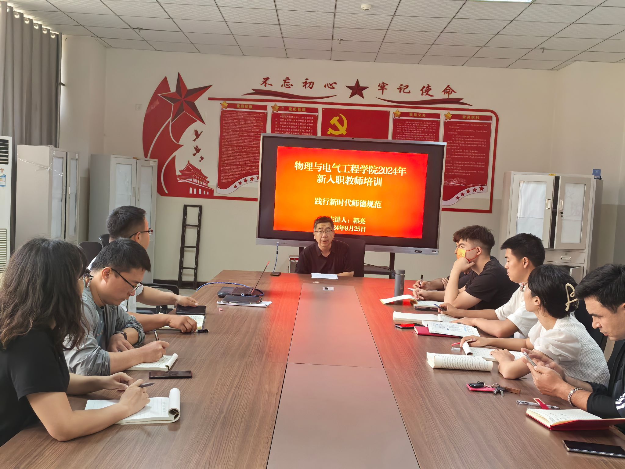 为加强师物理与电气工程学院资队伍建设,使新入职教职工尽快适应新的工作环境和工作岗位,强化岗位责任意识,提升师德师风修养,2024年9月25日,物理与电气工程学院党委开展新入职教师培训工作。物理与电气工程学院本年度新入职教师共13名。物理与电气工程学院党委书记王继新和副书记、院长郭亮分别作了专题讲座。