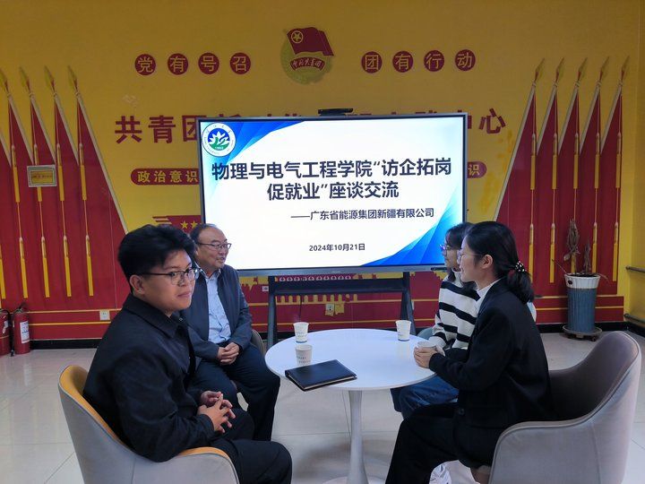 为深入学习贯彻习近平新时代中国特色社会主义思想和党的二十大精神,推动学院毕业生就业创业工作走深走实,物理与电气工程学院党委副书记俞胜清、学院就业专职辅导员与广东省能源集团新疆有限公司工作人员于物电楼109室开展“访企拓岗促就业”座谈交流。