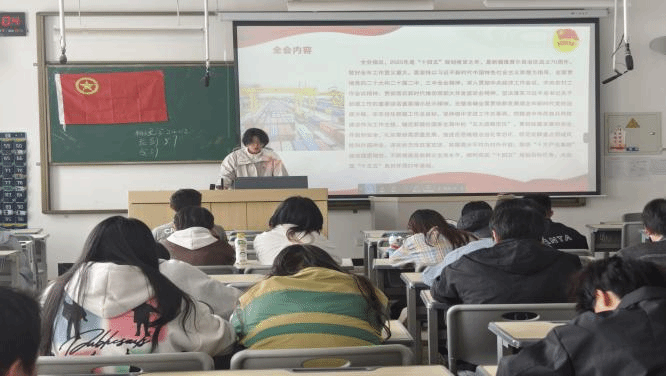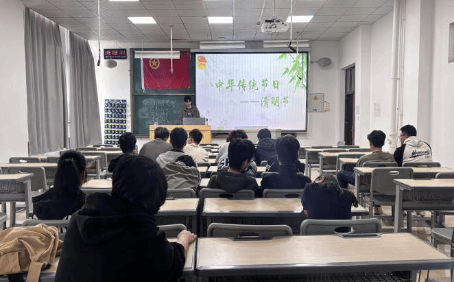 团课伊始,团支书借助精心制作的PPT,从清明节的起源、传统习俗、历史演变等多个维度,系统地讲解了这一传统节日的文化内涵。紧接着在对清明节的历史演变进行讲解时,团支书结合古代诗词和历史文献,阐述了清明节如何从最初的节气,融合寒食节、上巳节等习俗,逐步发展成为如今兼具自然与人文内涵的重要传统节日。讲述过程中,团支书同时穿插介绍了清明节期间祭扫英烈的重要意义,使同学们对这一节日的认识从单纯的习俗层面,上升到对革命精神的传承与弘扬。