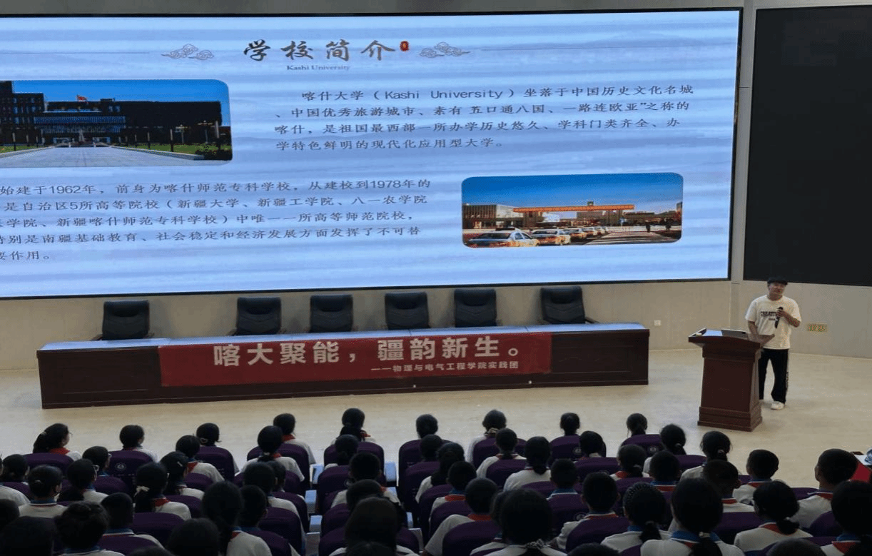 为深化文化传承与民族文化交流,喀什大学物理与电气工程学院开展“喀大聚能,疆韵新生”暑期社会实践活动为中学生点亮科技之光。2025年7 月 6 日,物电学院8名师生走进喀什市二十一中学,开展“喀大聚能,疆韵新生”暑期社会实践活动。